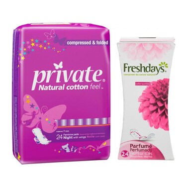 برايفت فوط صحية حجم ليلي مع أجنحة 24 فوطة + هدية