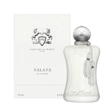 Valaya Parfums de Marly عطر زهري فواكه للنساء هذا عطر جديد Valaya صدر عام 2023 Quentin Bisch قام بتوقيع هذا العطر إفتتاحية العطر الألدهيدات الخوخ الأبيض الماندرين اليوسفي و البرغموت قلب العطر زهر البرتقال زنابق الوادي بيتاليا نجيل الهند Nympheal و الماهونيا قاعدة العطر تتكون من المسك الأمبروكسان أكيغالاوود و الفانيليا.