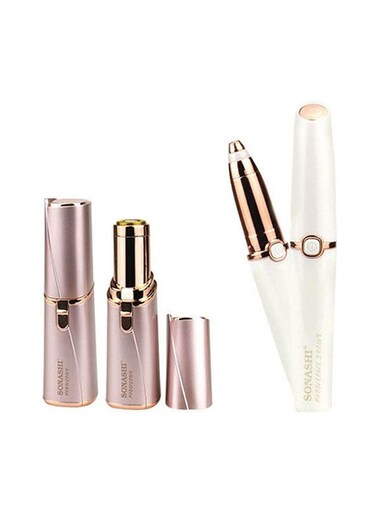 مجموعة آلة إزالة شعر الوجه والحواجب رائعة من قطعتين من سوناشي، SLD-822 + SLD-823، ذهبي وردي / أبيض