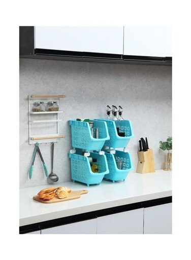 Lawazim 3-Tier Multipurpose Stackable Storage Rack Blue 30 X 17.5 X 70cm