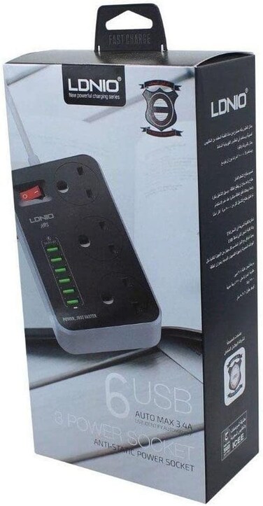 LDNIO connection is made of the highest quality materials and internal connectors designed for your convenience and security that protects against power interference and disconnection of your device operates with high reliability during connection and sync. Flame Protection for Plugging Errors 3 Port Electric Flasher 6 USB Ports Support Fast Charging