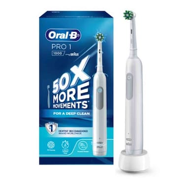Oral B Pro 1 1000 Rechargeable Electric Toothbrush With Pressure Sensor Powered By Braun, White