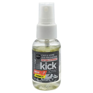 - Features: - Kick Spray Air Freshener: Extra strong formula for lasting freshness - Versatile Use: Ideal for both car and home environments - Compact Size: 30ml bottle for convenience and portability - New Formula: Enhanced with the latest fragrance-release technology - Aroma Black: Infuse your space with a refreshing scent of Black - Easy to Use: Simple spray mechanism for quick application - Quality Made: Produced to ensure high standards of scent and longevity