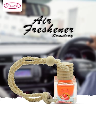 - • STRAWBERRY that fills your car with a cheerful and sweet fragrance. • Rearview mirror with this stylish hanging air freshener, featuring an elegant glass bottle with a stylish wooden cap. • The long-lasting scent keeps your car smelling great for extended periods, ensuring a pleasant driving experience every time. • Hang it easily with the sturdy and decorative rope to add a hint of freshness without any hassle. • With high-quality materials and fragrance oils, this Fresh brand air freshener is suitable for use in all vehicle types.