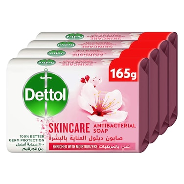 Dettol Skincare Anti-Bacterial Bathing Soap Bar, Rose & Sakura Blossom Fragrance, 165g - Pack of 4