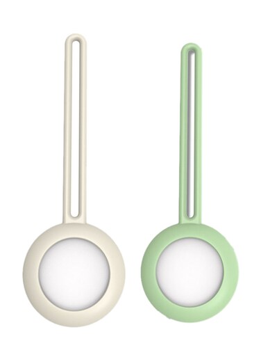 Fitme 2-Piece Silicone Long Case Set For Apple Airtag, Green/Beige