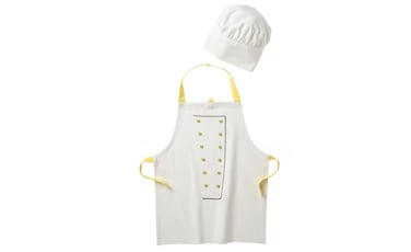 Has touch-and-close fastening which easily loosens if your child gets stuck. The chef’s hat fits children of different ages, since it’s elastic. Loops make it easy to hang the children’s apron and chef’s hat away when not in use. Recommended for ages from 3 years. Comprises: Children’s apron length 57 cm and chef’s hat circumference 49-55 cm.