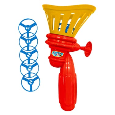 - Simply load the discs into the launcher, pull back the lever, and let it fly