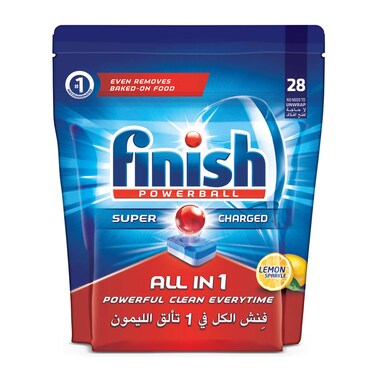 Finish All-in-1 Super Charged Powerball Dishwasher Detergent Tablets Lemon Sparkle 28 Tablets