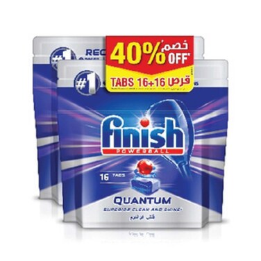 Finish dishwasher detergent tablets quantum max 16 tabs × 2 -40%