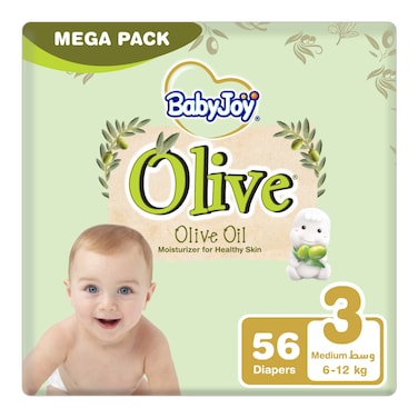Babyjoy olive oil moisturizer for healthy skin size 3 medium up to 6-12 kg mega pack 56 diapers