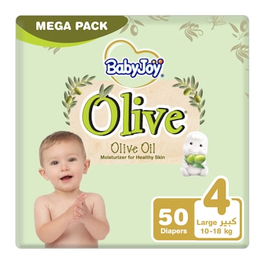 Babyjoy olive oil moisturizer for healthy skin size 4 large 10-18 kg x 50 diapers