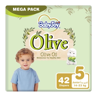 Babyjoy olive oil moisturizer for healthy skin size 5 junior 14-23 kg mega pack 42 diapers