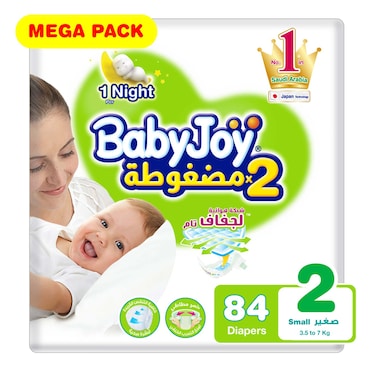 Babyjoy 2x Compressed Diaper Mega Pack Small Size 2, Count 84, 3.5 - 7 KG