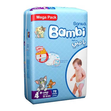 Sanita Bambi Diaper Size 4+ Large 10-18kg Mega Pack White 78 count