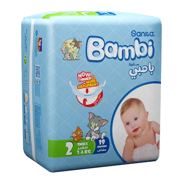 Sanita Bambi Baby Diapers Regular Pack, Size 2, Small, 3-6 Kg, 19 Count