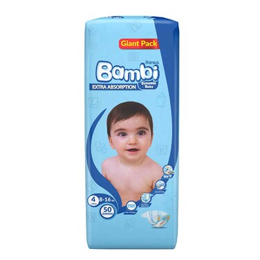 Sanita Bambi Baby Diapers Giant Pack Size 4, Large, 8-16 KG, 50 Count