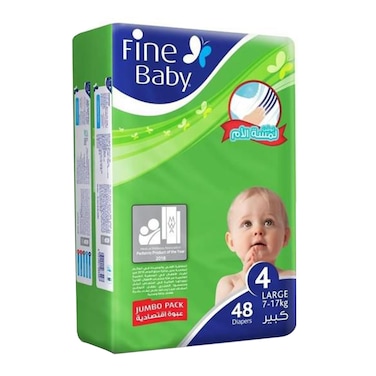 Fine Baby Diapers, DoubleLock Technology , Size 4, Large 7 - 14kg , Jumbo Pack, 48 diaper count