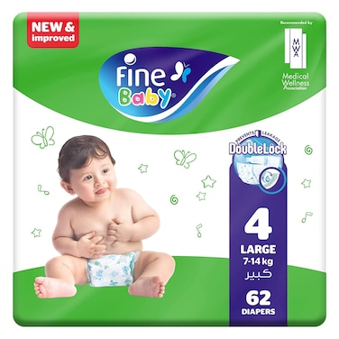 Fine Baby Diapers Mega Large Size 4, 7-17 kg 62 Pieces