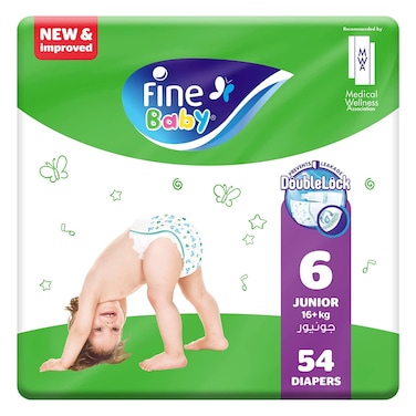 Fine Baby Diapers DoubleLock Technology Size 6 Junior 16+ kg Mega Pack of 54 diapers