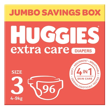 Huggies Extra Care, Size 3, 4 - 9 kg, Jumbo Box, 96 Diapers