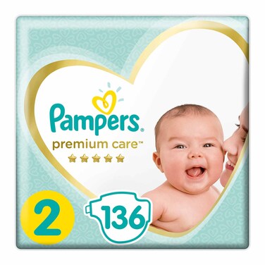 Pampers Premium Care Taped Diapers, Size 2, 3-8kg, Super Saver Pack, 136 Diapers