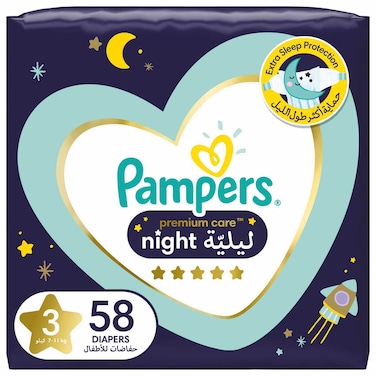 Pampers Premium Care Night Diapers, Size 3, 7- 11Kg, 58 Diapers