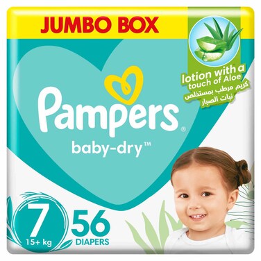 Pampers Aloe Vera Taped Diapers, Size 7, 15+kg, Jumbo Box, 56 Diapers