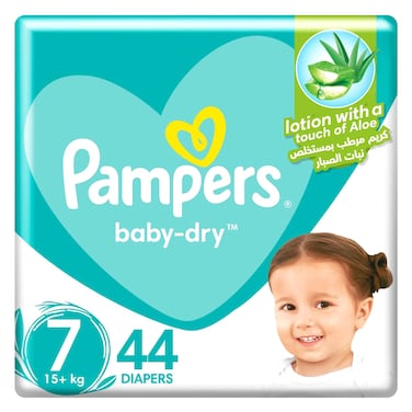 Pampers Aloe Vera Taped Diapers, Size 7, 15+kg, Giant Pack, 44 Diapers