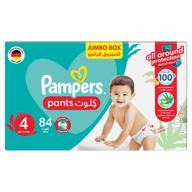 Pampers Aloe Vera Taped Diapers, Size 4, 9-14kg, Jumbo Box, 84 Diapers
