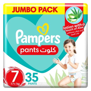 Pampers Aloe Vera Pants Diapers, Size 7, 17+kg, Mega Pack, 35 Diapers