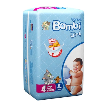 Sanita Bambi Baby Diapers Large Size 4, 13 Count, 8-16kg
