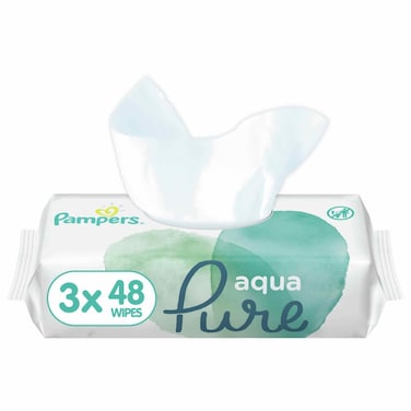 Pampers Baby Wipes, Aqua Pure, 3x48 Wipe Count