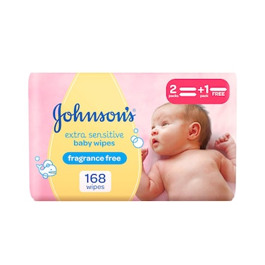 Johnson's Extra Sensitive Fragrance Free Baby Wipes White 56 countx3