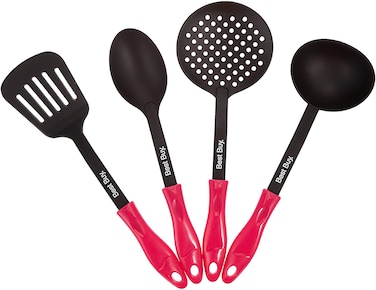 Flamingo Nylon Utensils Set, Red/Black, FL-Bb4109KWst, 4 Pieces
