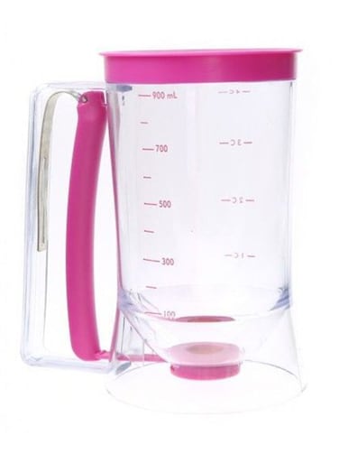 - <p>A spring-loaded trigger opens and closes the dispenser nozzle for accurate batter placement<p>Extra-wide opening is large enough to pour the batter from a large mixing bowl<p>Holds up to four cups of batter<p>Color: Clear/Pink<p>Size: 900 ml