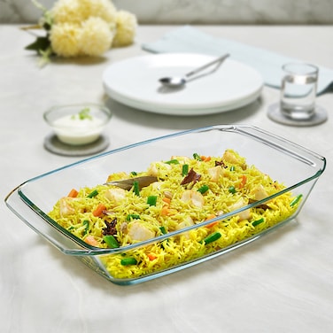 The Deep Rectangular Dish is your go to when serving large portions of food such as dahi bhalla, jalebi, rasmalai and much more. This microwave and oven safe dish is your perfect serving partner for parties and get togethers - bake heat and serve at one shot, while looking great at the same time!