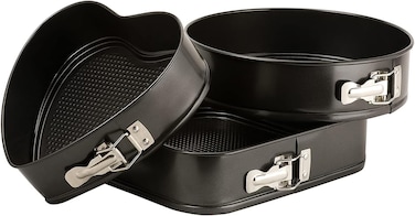 Royalford 3 Pcs Springform Set - Mini Non-Stick Cheesecake Pan, Spring-Form Pan, Rectangle Cake Pan With Removable Bottom Leak-Proof And Quick Release Latch Bakeware Round/Heart-Shaped Spring Form Pan