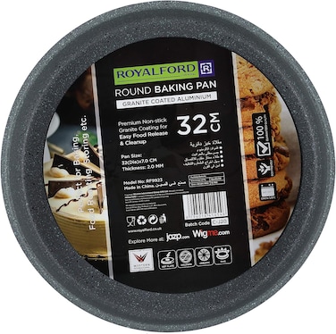 Royalford Rf9923 32cm Aluminium Round Baking Tray - Durable & Granite Non-Stick Interior & Exterior Oven Safe, Ideal For Cakes, Cheesecake, Quiche, Mousse & More