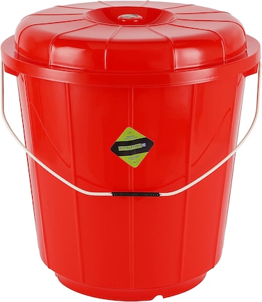 Royalford 25L Plastic Bucket With Lid- Rf11716 Multi-Purpose Utility Bucket With A Lid And Steel Handle Break-Resistant, Light-Weight, Durable Construction Perfect For Bathroom, Kitchen Red