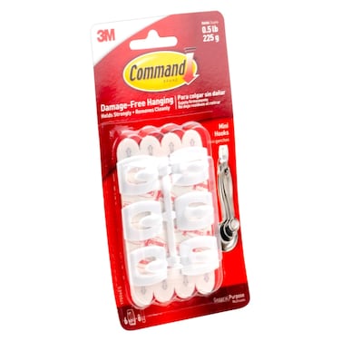 Command 17006ES Hooks are small in size but mighty in strength, capable of holding up to 225 grams each. The hooks come in a crisp white colour, adding a touch of simplicity and elegance to any space. Each pack contains 6 hooks and 8 strips, providing you with plenty of options for organizing and decorating your home.