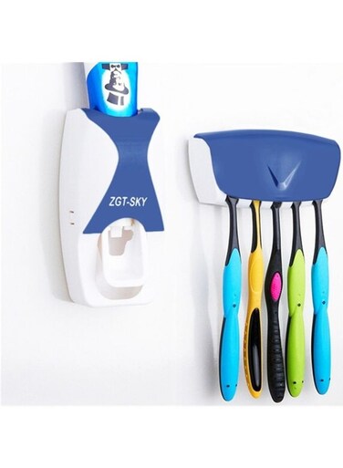 Generic Automatic Toothpaste Dispenser Set With 5 Toothbrush Holder Blue/White 16 x 8 x 11cm
