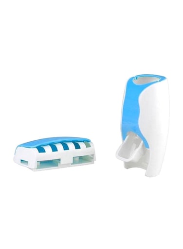 Generic Toothpaste Dispenser With Toothbrush Holder Set Blue/White