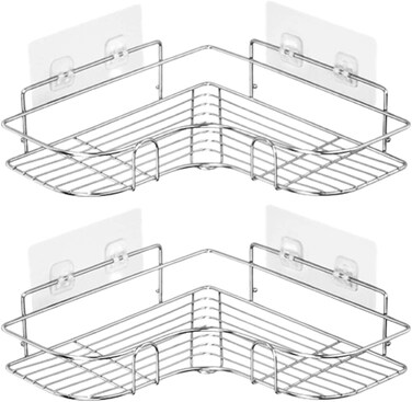 Product Description: SKY-TOUCH 2 Pieces per Pack Self Adhesive No Drilling Wall Mounted Bathroom Corner Shower Caddy, Shower Storage Shelf Organizer for your Bathroom, Kitchen and Toilet, Stainless Steel