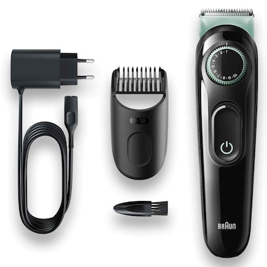 Achieve your style effortlessly with the Braun BT3 beard trimmer and hair clipper for men. This beard trimmer is sharper, faster and more efficient—with a wider cutting area to capture and cut more hair in every stroke*. Beard Trimmer 3 includes a precision dial with 20 length settings, lifetime sharp blades, and NiHM battery.*vs. previous Braun trimmers