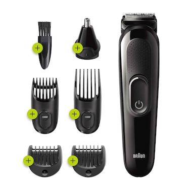 Master your style in ultimate precision with the rechargeable MGK3 6-in-1 trimmer. This beard trimmer is sharper, faster, and more efficient—with a wider cutting head to capture and cut more hair in every stroke*. The MGK3 offers 13 lengths (0.5–21mm) and lifetime sharp blades so you can always achieve the look you want effortlessly across your beard and hair.*vs. previous Braun trimmers