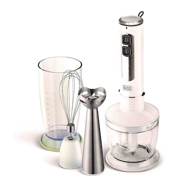 The Black+Decker 400W 4 in 1 Blender with Chopper and Whisk provides you with perfect assistance while preparing food. This 4-in-1 blender allows you to mix and puree various food items. Thanks to the 400W DC motor, it provides powerful and effective blending. The stainless steel blades allow you to chop various vegetables and other food items with ease. Also, it allows you to blend and chop according to your requirement, thanks to the 2 speed with 5 precision settings. The durable stainless steel whisk simplifies the process of whipping. Moreover, the modern-day design and ergonomic handle allow you to handle this 4-in-1 blender comfortably. Plus, it is easy to wash, thanks to its dishwasher-safe parts. The 800ml beaker and 500ml chopper bowl provide you with significant space to blend and chop items.
