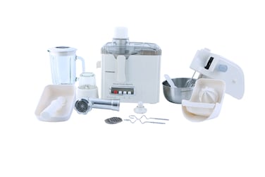 Enjoy Complete Kitchen Machine with Olsenmark Multi Food Processor Whatever be your need, be it chopping vegetables or juicing or grinding herbs and spices, you get it done with help of a complete kitchen machine that'll do all your work in minutes. The Olsenmark Multi Food Processor is the complete package that you need. Easy to clean with a selection of high quality detachable blades and fittings made from robust stainless steel, there's an attachment for just about every culinary task.Whether your blending, shredding or mixing dough, the powerful motor allows you to process your ingredients quickly and easily. Simply select the accessory of your choice, set your speed according to the task and let the machine do the rest. The capacity of a large plastic bowl is 1.5 liters, it is used for slicing and rubbing vegetables, shredding meat, kneading dough and other necessary operations. The 1 litre capacity blending jar is ideal for making soups and smoothies. The extra-wide chute enables you to easily add food and ingredients into the bowl as and when needed.