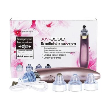 جهاز تنظيف المسام وشفط الدهون والرؤوس السوداء وتنظيف حب الشباب يمكنك إصلاح مشاكل بشرتك بنفسك وبكل سهولة وأمان ,يساعدك على التخلص من الخلايا الميته ويقشر الوجة تقشير خفيف ويمنح بشرتك النضارة والشباب ,يعمل على شفط خلايا الجلد الميتة والدهنية ويقشر الوجه بشكل لطيف وخفيف ,مكون من 4 رؤوس وظائفهم كالتالي: الرأس الالماسي: الذي يعمل على تقشير خلايا الجلد الميت والخلايا الدهنية. ,الرأس الدائري الكبير: يتميز بقوة شفط كبيرة وفعالة للرؤوس السوداء وخاصة في منطقة الفك من الوجه. ,الرأس الدائري الصغير: قوة شفطه ضعيفة لتناسب الجلد الرقيق والحساس. الرأس البيضاوي: وظيفته تخفيف التجاعيد. ,يغنيك عن عيادات ومراكز التجميل وعلاجات السبا المكلفة حيث يمكنك الحصول على نفس النتائج من المنزل
