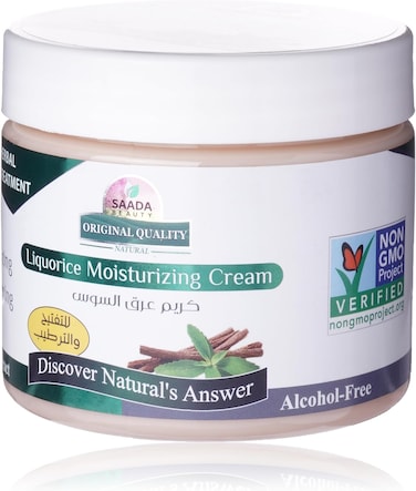 Licorice helps moisturize dry and damaged skin, Provides instant nourishment to dry areas such as elbows and knees as well as feet. Licorice has a rich and creamy texture that makes it easy to absorb easily, Butter moisturizes all skin types, Ideal for everyday use. You can also use the cream as a scalp moisturizer. Licorice works on cell renewal as the acids in it keep the skin fresh and youthful, and rid it of dead skin. Licorice cream treats pimples and acne, thanks to licorice contains antioxidants that work to remove dirt, microbes and inflammation. Licorice cream regenerates skin cells, helps to quickly replenish damaged cells, as the acids contained in it keep the skin fresh and young, and rid it of dead skin. Helps keep your skin hydrated and supple to give it a radiant and youthful skin, The cream also repairs skin damage as well as protect it from the sun's harmful rays.